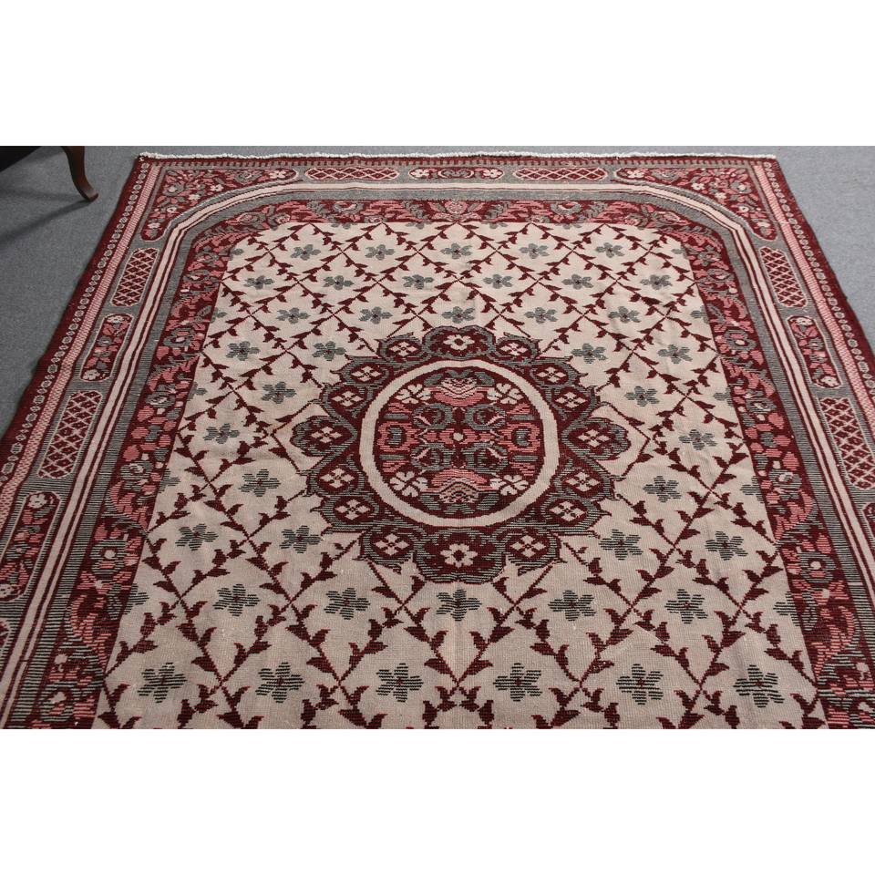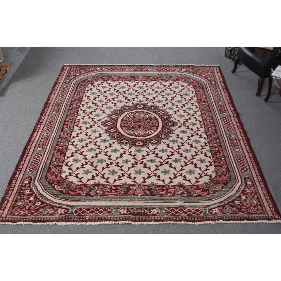 Classic Red Gray Wool Rug 7.6 X 9.6 ft Handmade Turkish Large Area Rectangle Abstract Patchwork Latex Hallway 10mm Room Rug