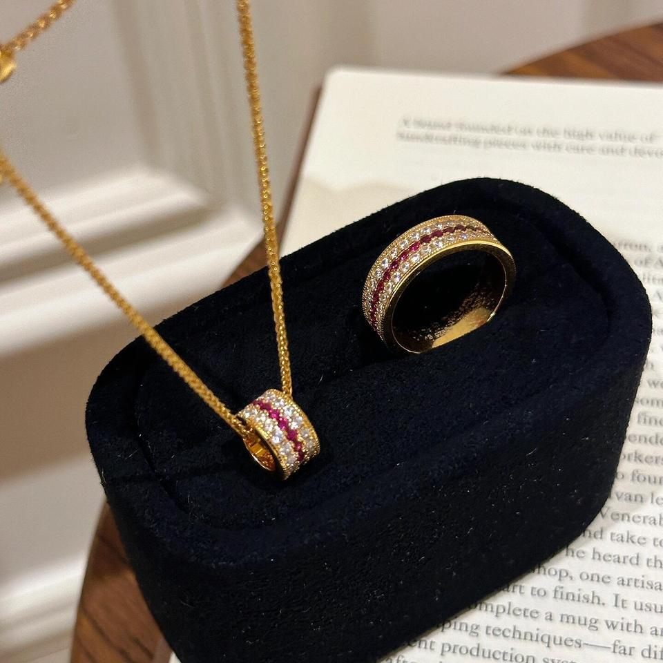 Wenchi Classic Red Three-Row Diamond Necklace S925 Pure Silver Sparkling Rose Women's Exquisite Luxury Fashion Jewelry Set China