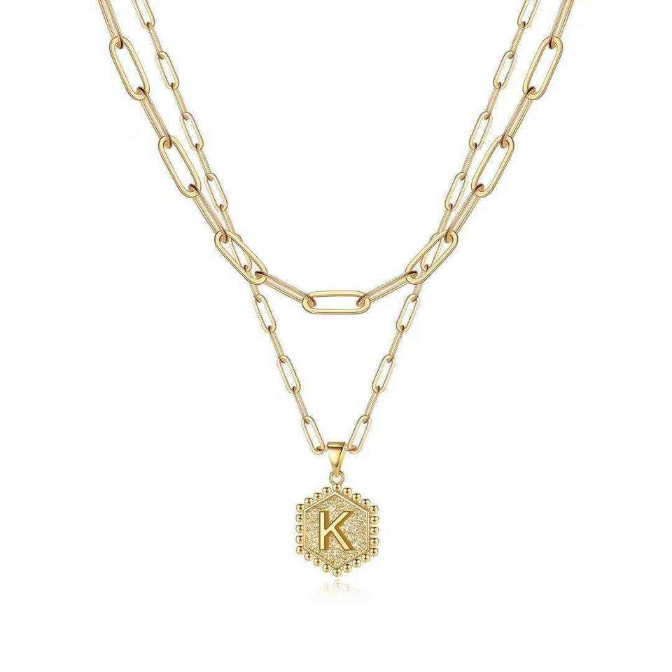 Classic Refined Initial Necklace Adjustable Chain Hammered Disc Pendant Letter A-Z Fashionable Valentine Birthday Gift for Women