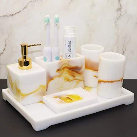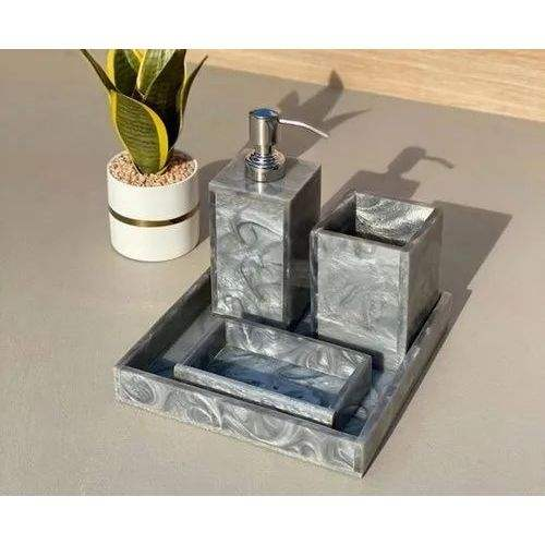 Classic Resin Four-piece Bathroom Set with Hand Wash Bottle Tray Customized Color & Size High Standard Quality