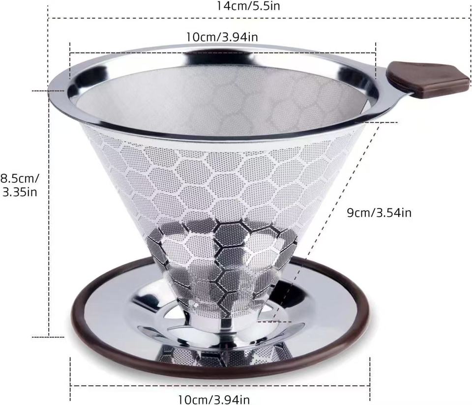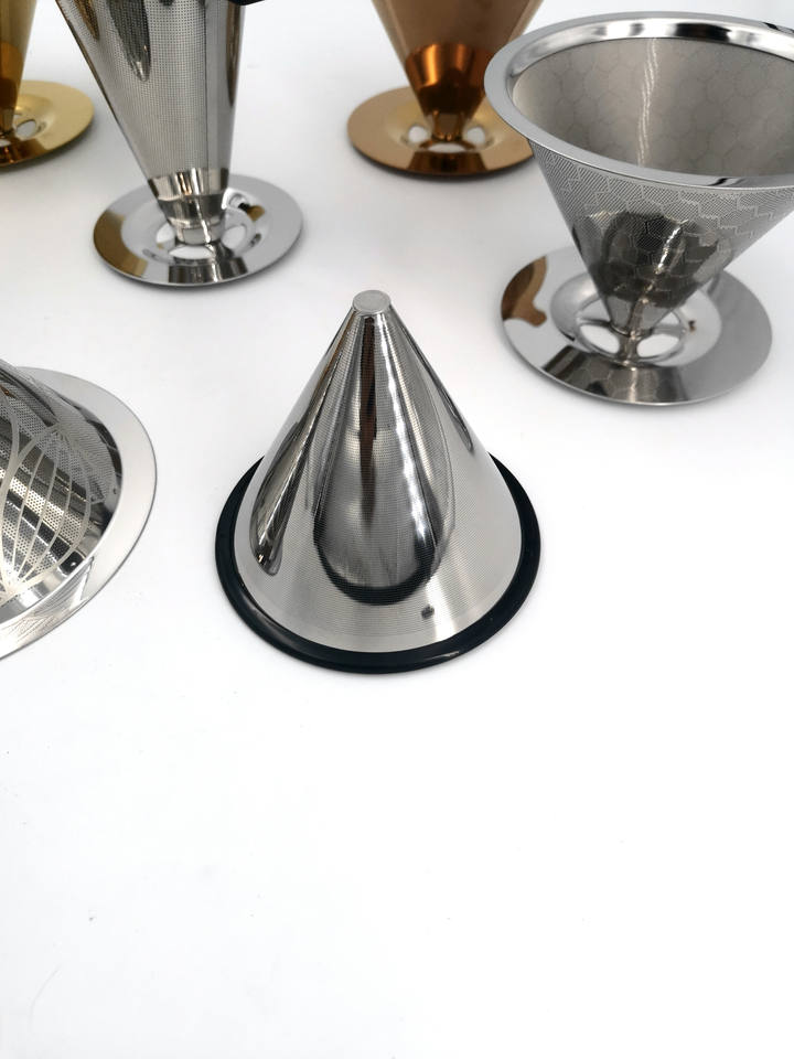 Classic Reusable Gold Stainless Steel Metal Mesh Strainer New Design Drip Cone Tea and Coffee Filter Set