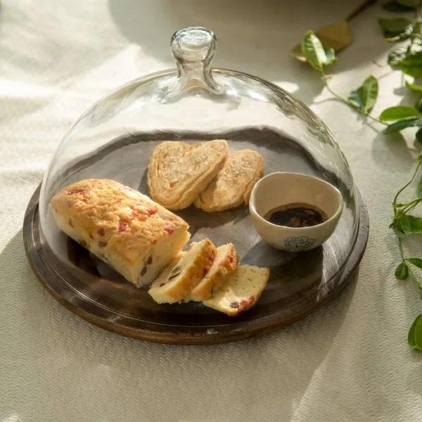Classic Roman Style Vintage Brass Cake Stand with Hand-Engraved Gold Luxury Metal and Glass Dome Cover for Home and Cake Decor