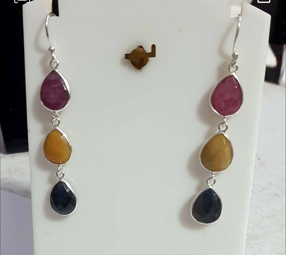 Classic Rose Chalcedony 12mm Star Shape Gemstone Long Chain Stud Silver Earring Handmade Jewelry for Wedding Wear & Anniversary