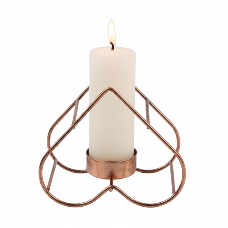 Classic Rose Gold Metal Wire Heart Shaped Candle Holder For Home Decor Geometric Iron T Light Candle Stand For Wedding Decor