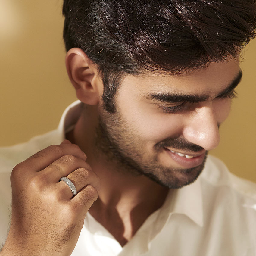 Classic Silver 14k White Gold Men's Engagement Promise Ring with Lab Grown Diamond Elegant Mens Jewelry for Weddings Parties
