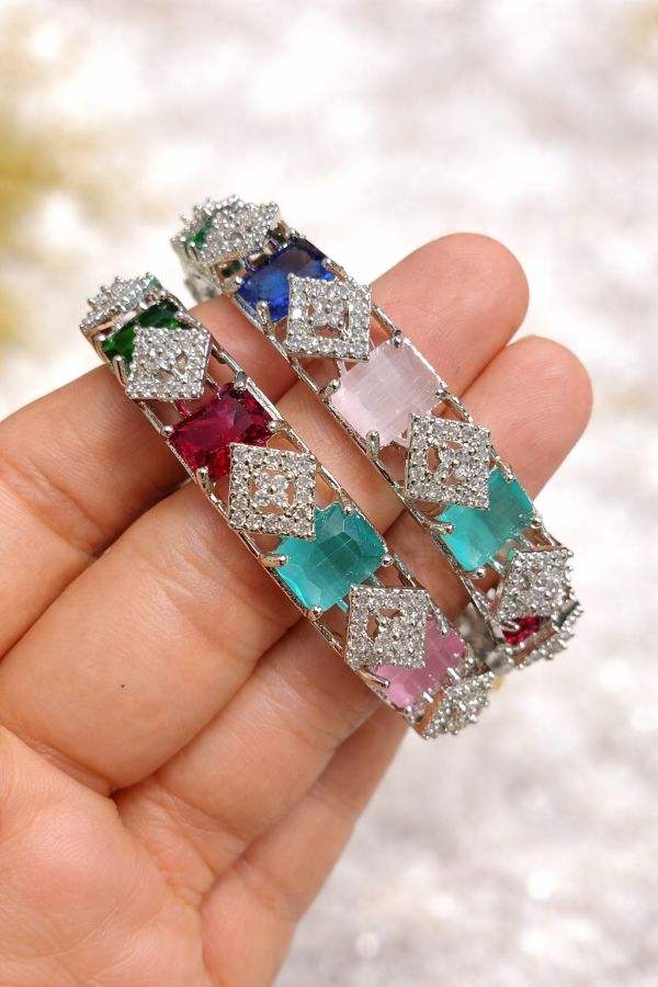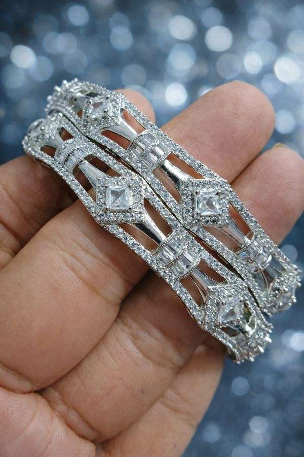 name or words:AMERICAN DIAMOND SILVER PLATED BANGLES