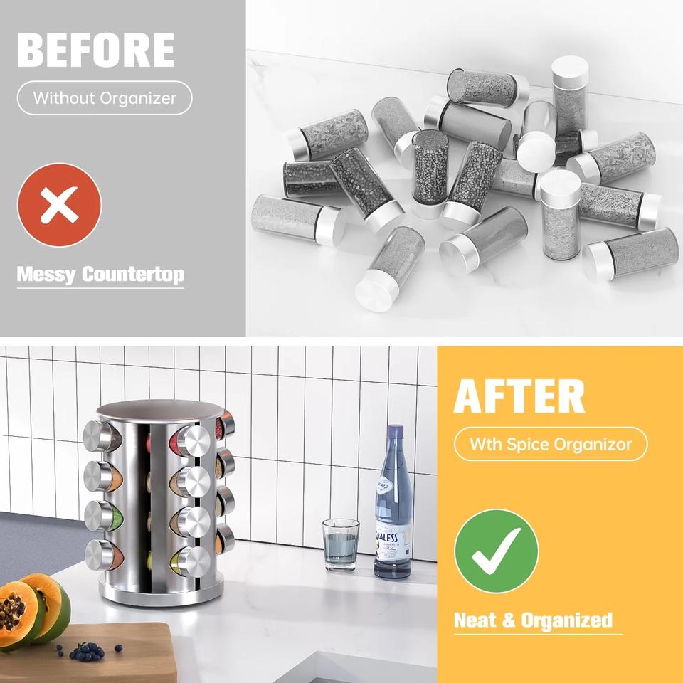 Classic Single Tier Black Stainless Steel Durable Kitchen Rotate Spice Rack Organizer Spice Jar Organizer Set Pantry Cabinet