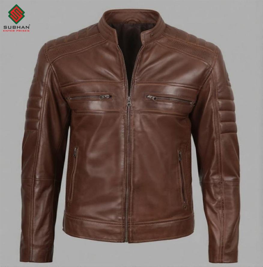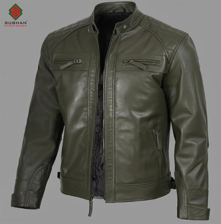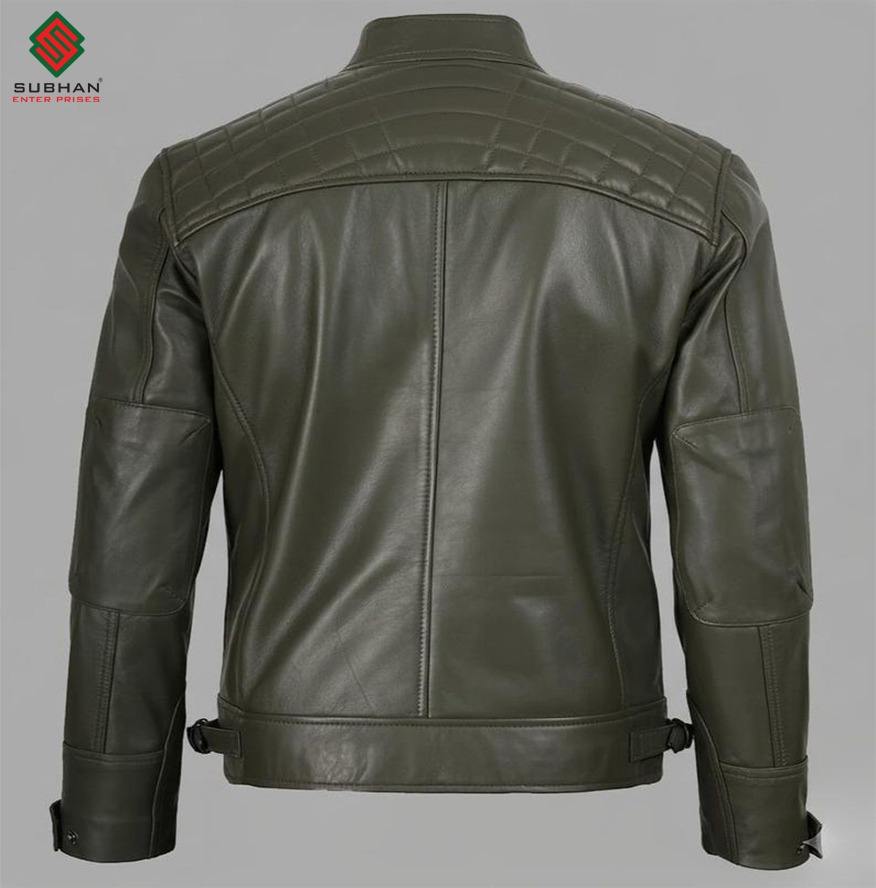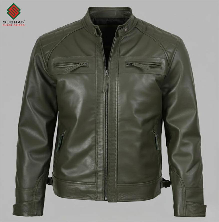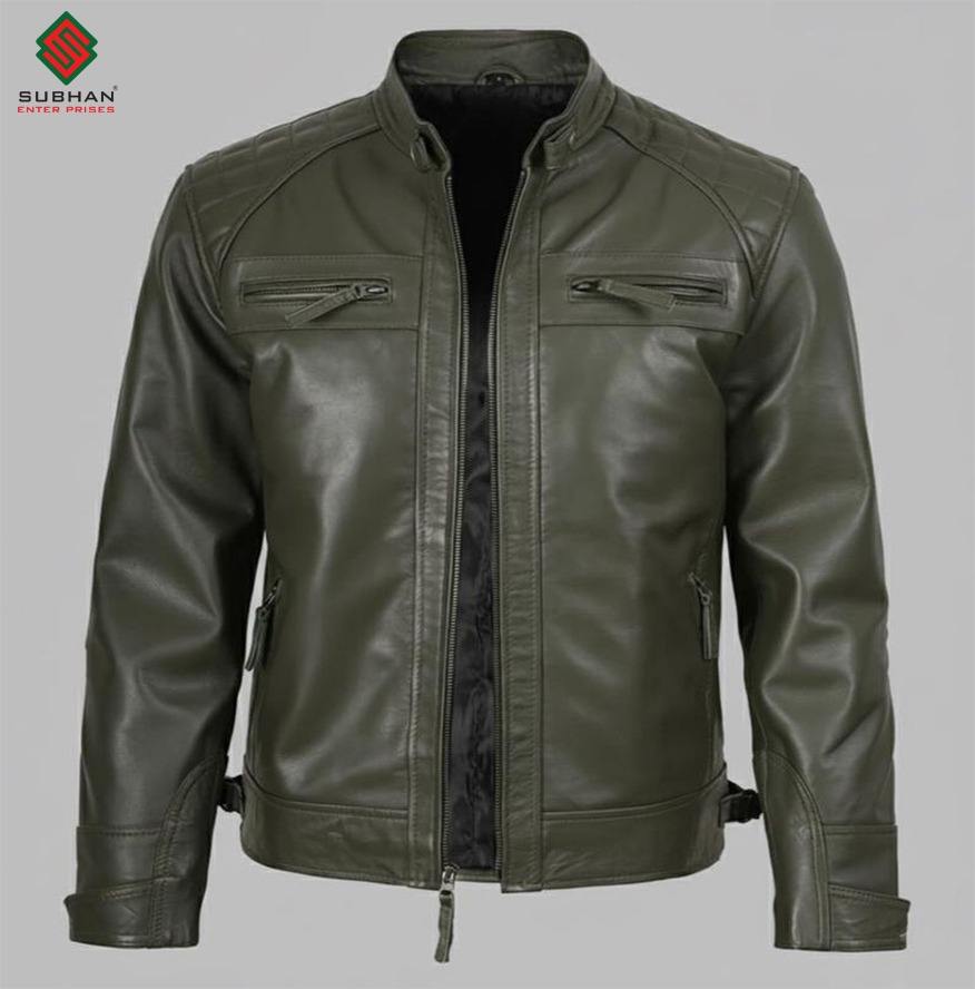 Classic Solid Olive Green Distressed Synthetic Leather Casual Winter Jacket for Men's | Handmade Cafe Racer Biker Style