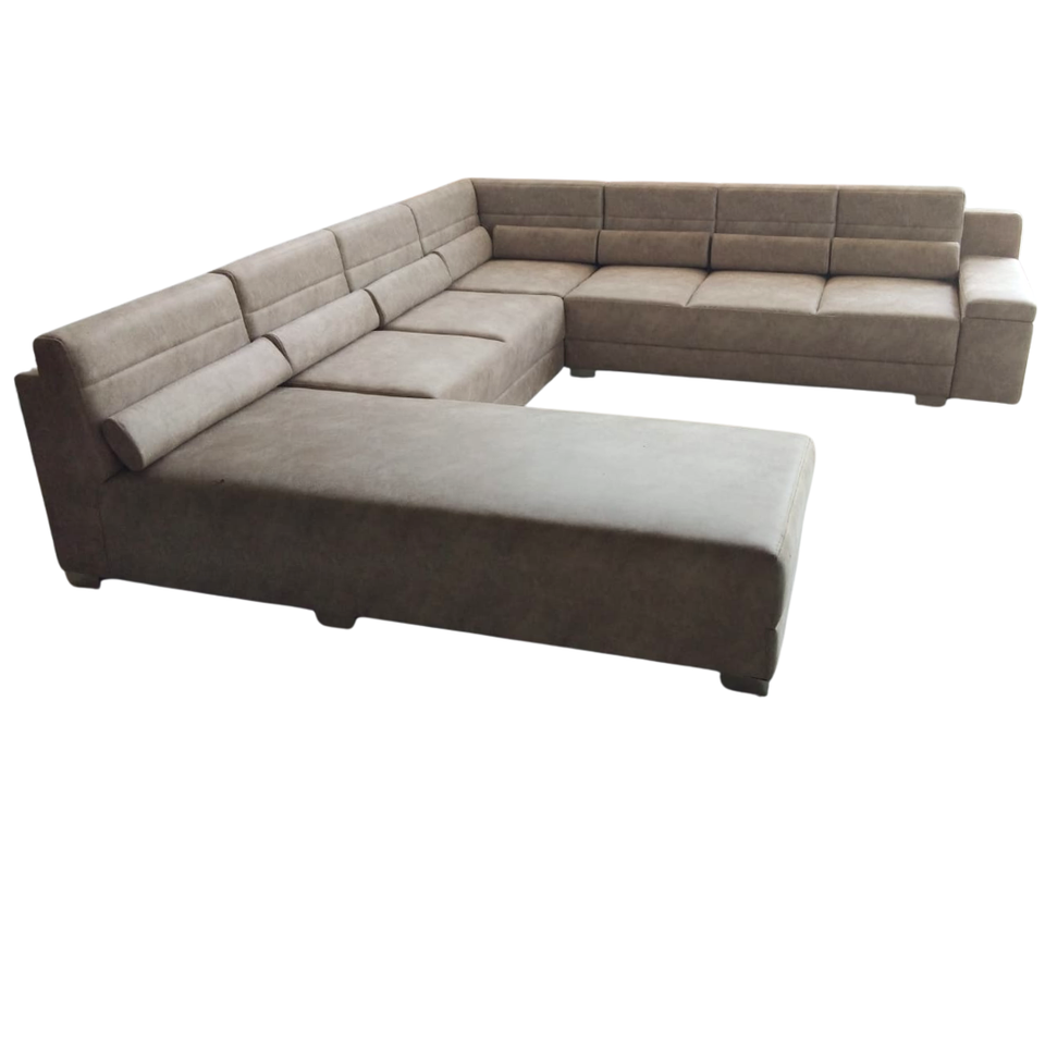Classic Solid Wood Corner Shape Sofa Set for Living Room Elegant Leather Cover Home Furnishing for Villa Apartments in India