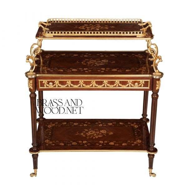 Classic Solid Wood Serving Trolley With Brass Details And Double Shelf For Home And Hospitality Use