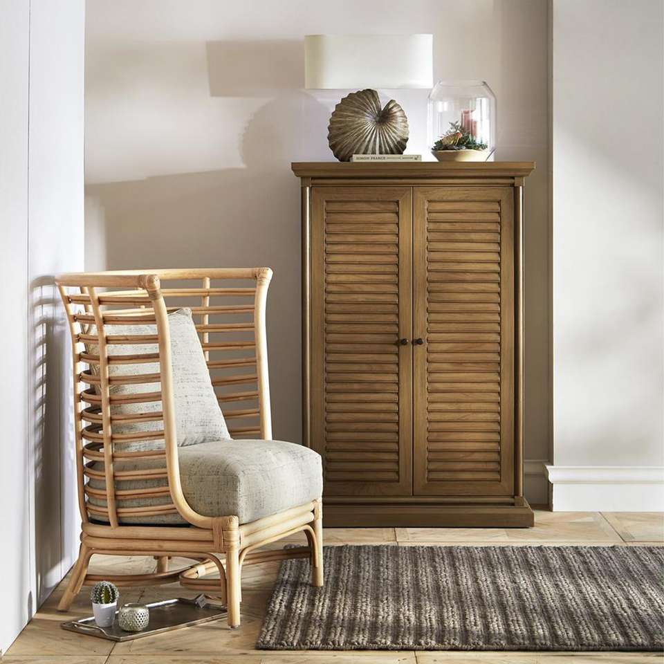 Classic Solid Wood Wardrobe with Double Louvered Doors in Elegant Gray Finish for Timeless Bedroom Storage and Interior Style