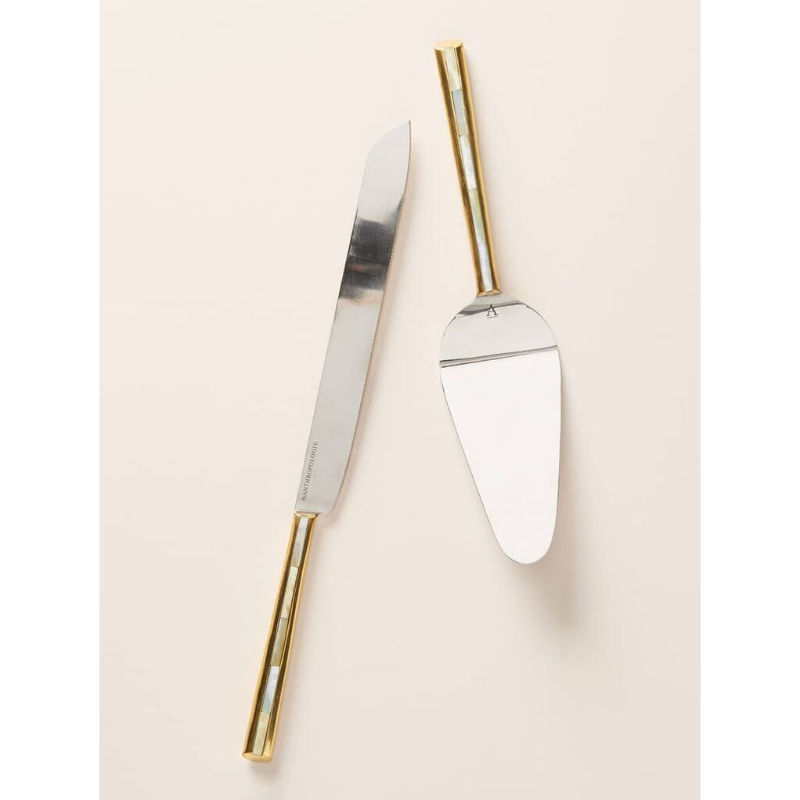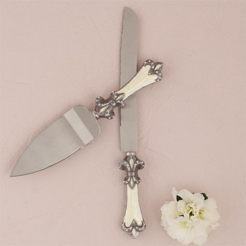 Classic Stainless Steel Cake Server Set with Embossed Resin Handle Wedding Birthday Parties Decor Metal Cake Tools
