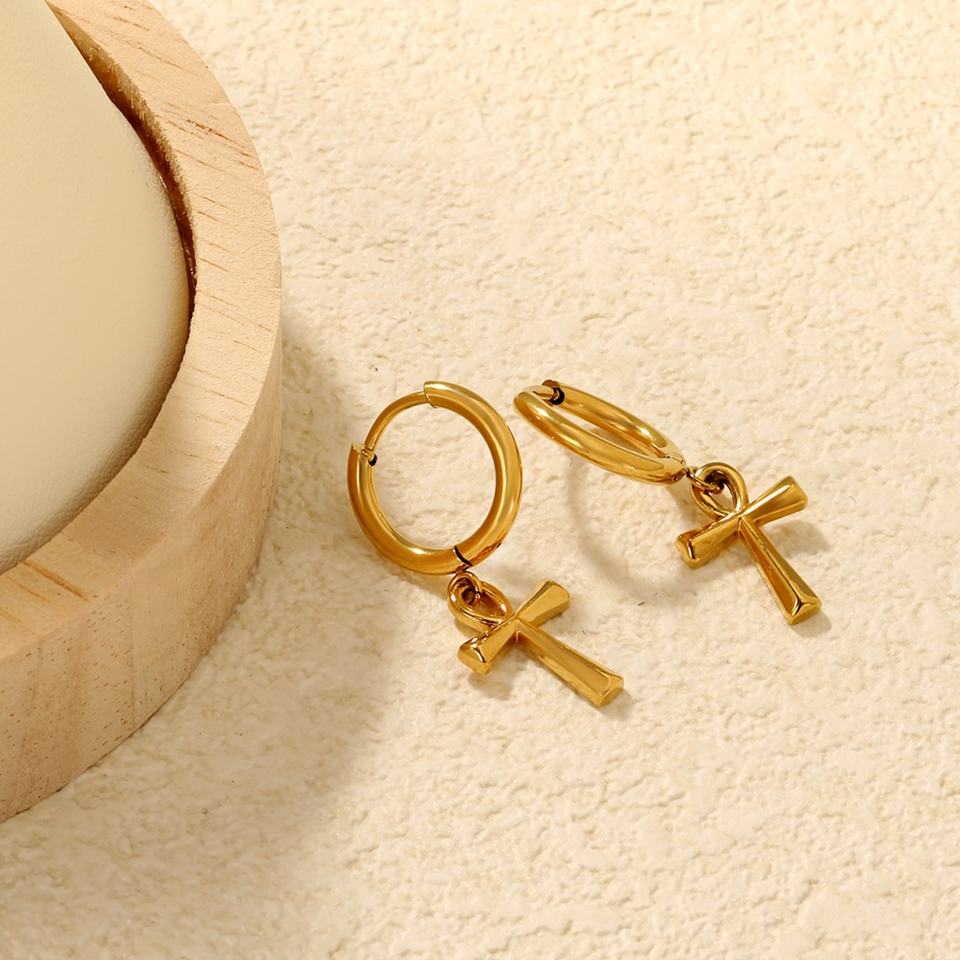 Classic Stainless Steel Jewelry 18K PVD Gold Plated Pendant Cross Hoop Earrings Minimalist Huggie Dangle Earrings for Women
