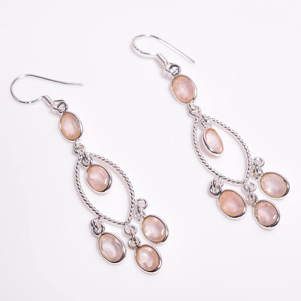 Classic Style 925 Sterling Silver Dangle Drop Earrings Handmade Rose Quartz Oval Cut Gemstone Fine Jewelry Anniversary Unisex