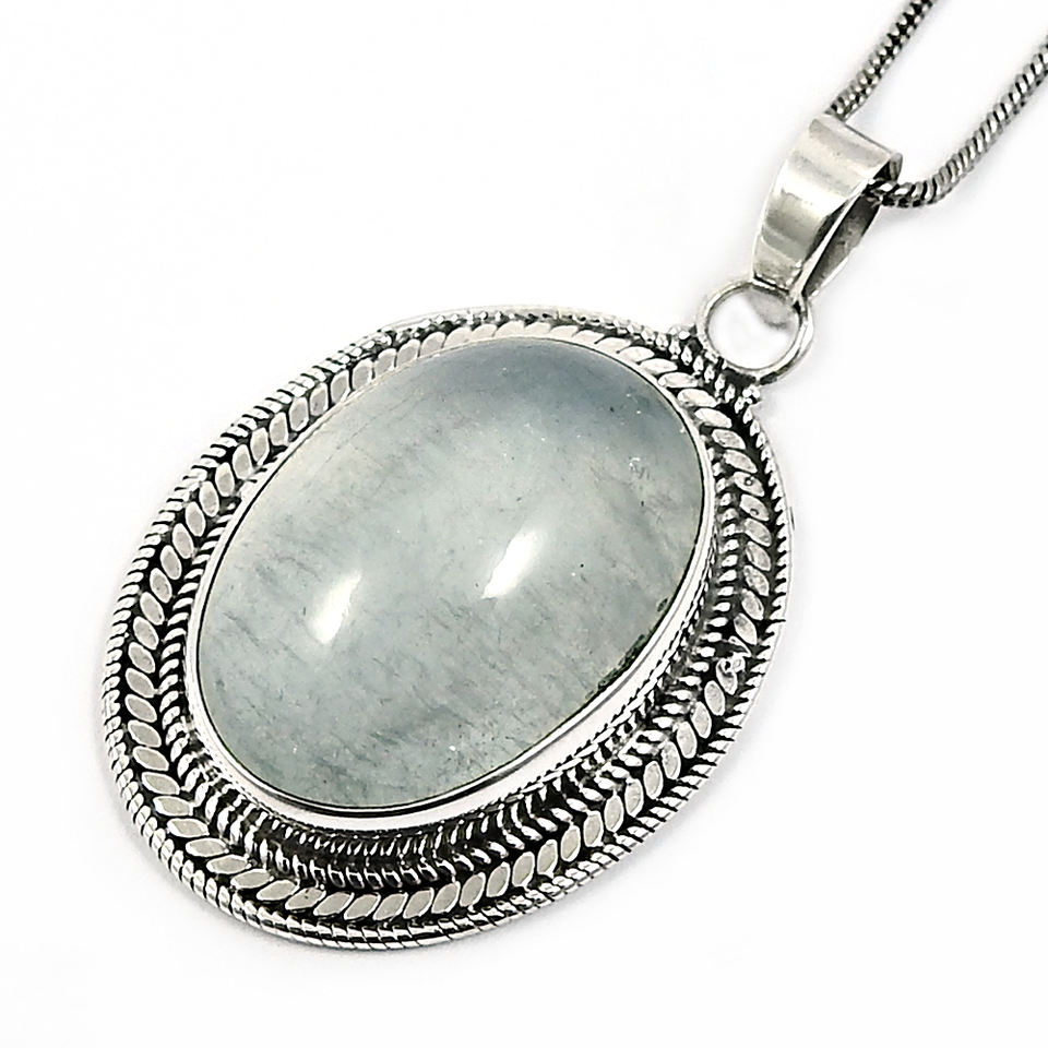Classic Style Big Stone Natural Aquamarine Gemstone 925 Sterling Silver Oval Shape Boho Pendant Handmade Jewelry Bulk Suppliers