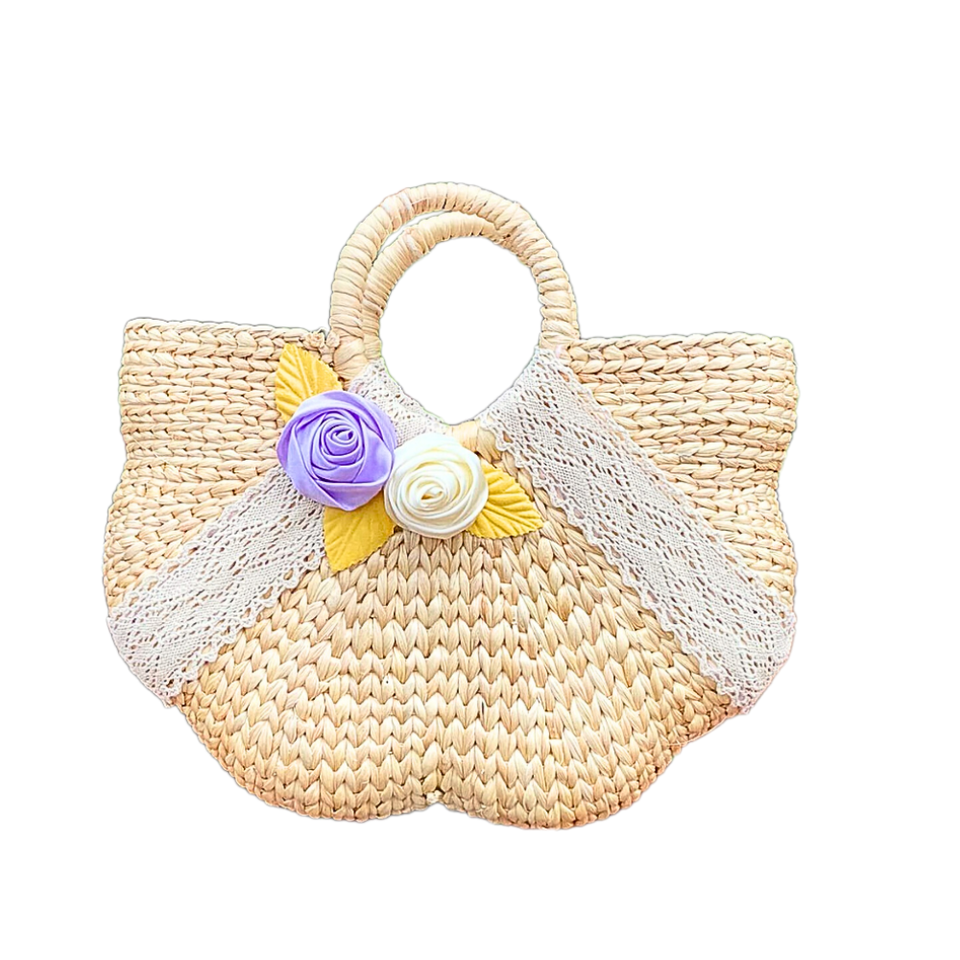 Classic Style Light Brown Small Rattan Bag Good Price Water Hyacinth Basket Straws Storage Flower Vietnam Manufacturer Gifts