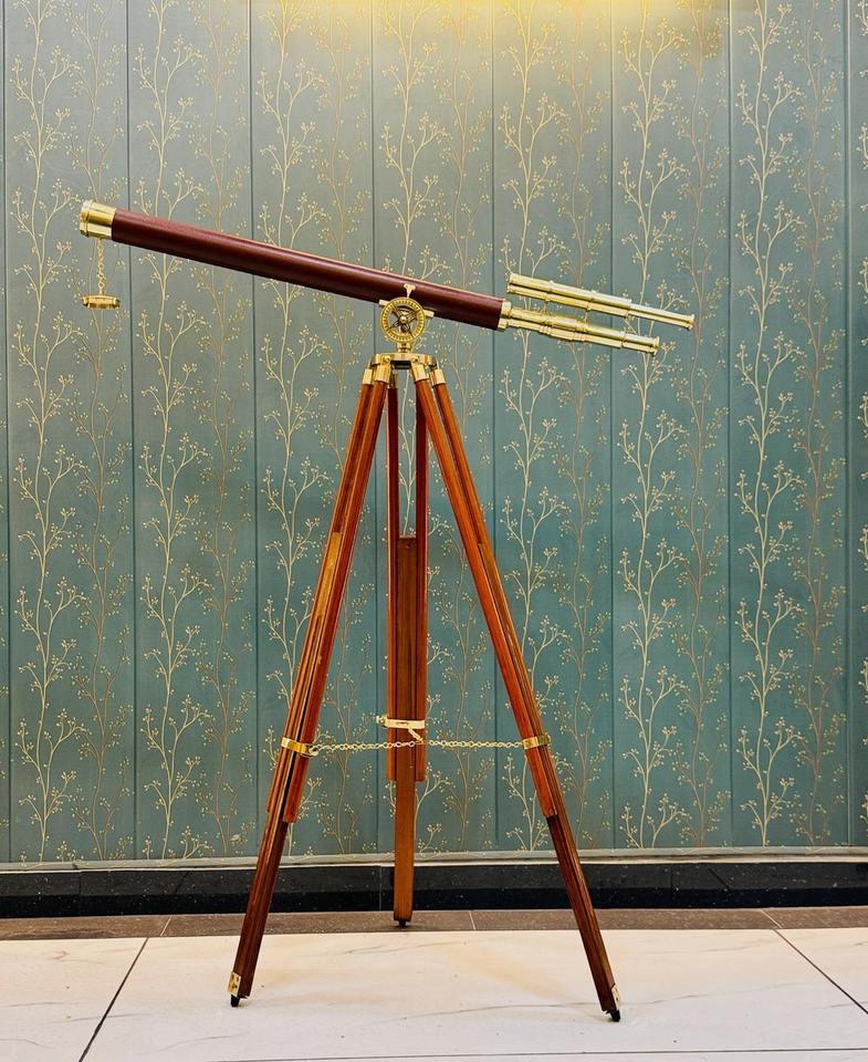 Classic Style Metal And Wooden Telescope Handmade Brass Finish Nautical Navigation Decor For Home Library Office