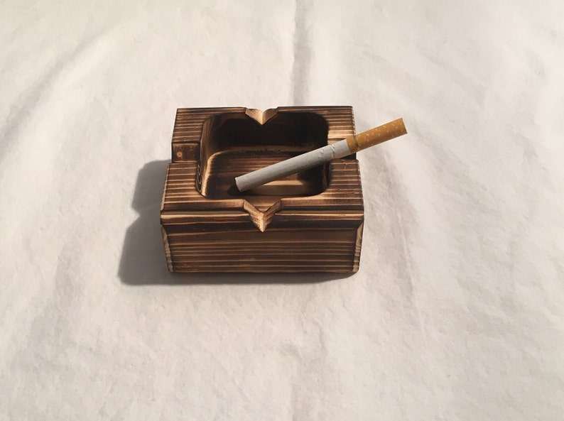 Classic Style Smokeless Sustainable Wooden Ashtray | Hand Polished Solid Natural Wood Reusable for Home Commercial Use |