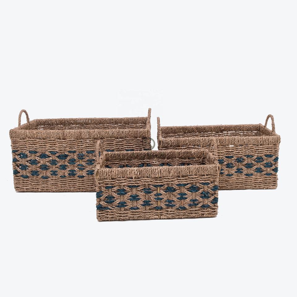 Classic Stylish Handcrafted Seagrass Woven Decorative Storage Basket Foldable Kitchen Food Organizer Sustainable Plastic Handles