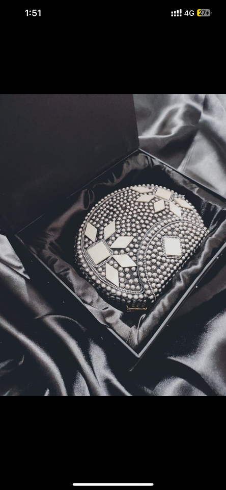 Classic Stylish Mosaic Clutch Purse for Women Intricate Tile Design Handcrafted Pearl Chains for Formal Events Evening