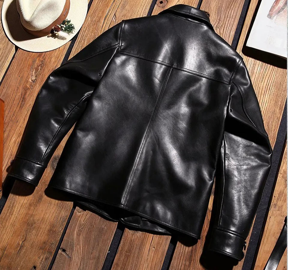 Classic Switchyard Men's Jacket in 100% Genuine Italian Tanned Cowhide Leather Vintage Casual Sheep Skin Trench Coat