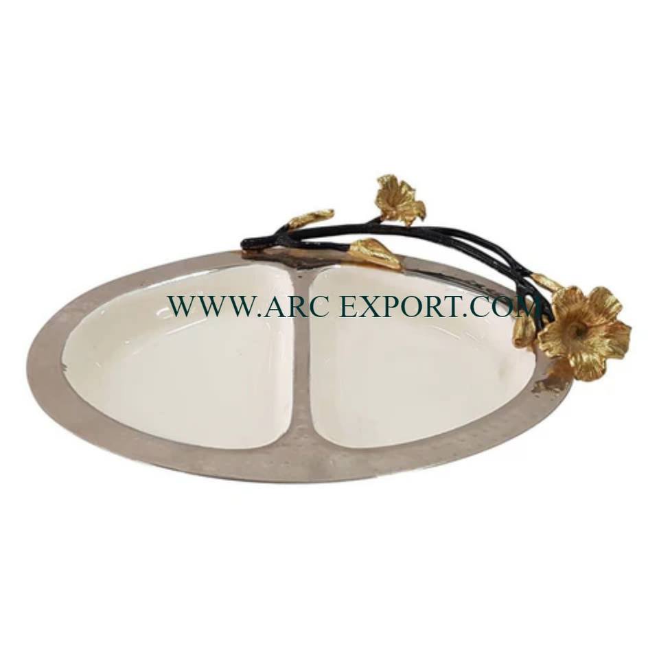 Classic Tableware Metal Bowl Dessert Server Platters Flower Designing Aluminum Handles for Top Selling Large Size Metal Bowl