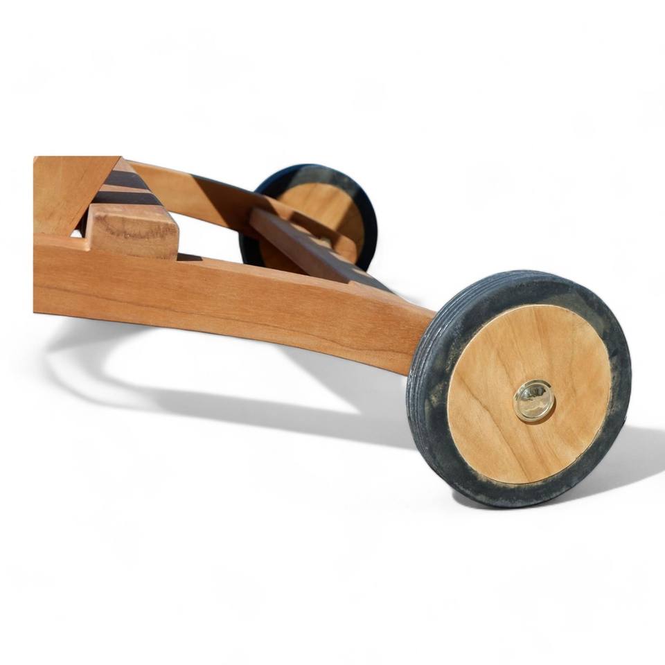Classic Teak Outdoor Steamer Chair with Wheels Patio Recliner Chair with Folded Back Rest and Foot Wood Garden Deck Sun Loungers