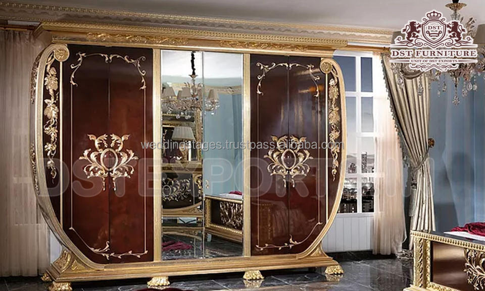 Classic Teak Wood Wardrobe in White Gold PolishProduct name