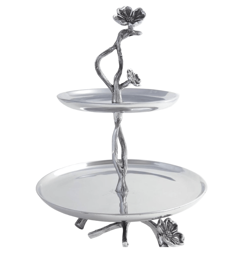 Classic Three-Tier Decorative Cake Stand with White Porcelain Plates Ring Handle & Metal Frame for Elegant Hosting