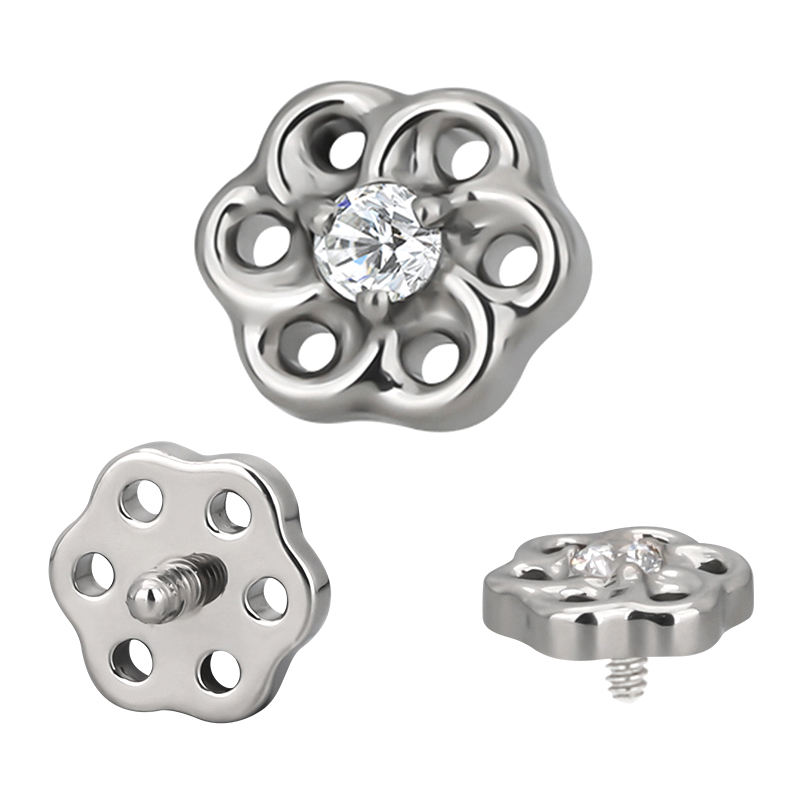 Classic Titanium Small Hollow Swirl Flower Top with CZ Center Internally Threaded Body Jewelry for Children ASTM F-136 Compliant