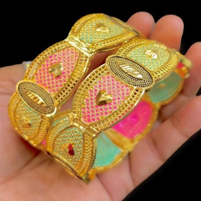 Classic Trendy One Gram Gold Plated And Micro Italian Polish Daily Wear Bangles Two Pair Of Bangles Set for Women