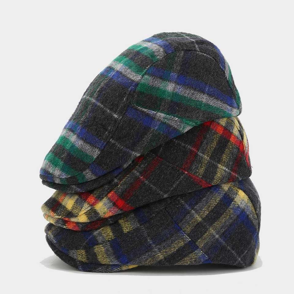Classic Unisex Tweed Flat Cap Eco-friendly Four Seasons Headwear Grid Design Fashionable for Casual Occasions for Adults