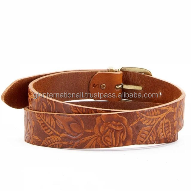 Classic Vegetable Tanned Leather Heat Embossing Western Leather Tooling Belt for Unisex Custom Sizes available