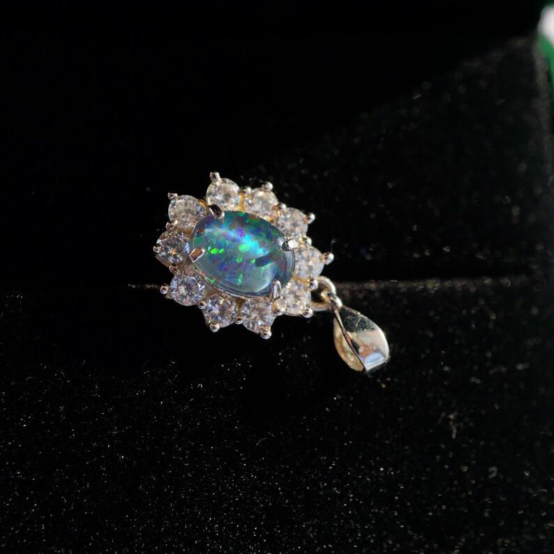 Classic Victorian Halo Australian Opal Pendant Necklace Vintage Opal Jewelry Gift Elegant 925 Sterling Silver 14K Gold Plated