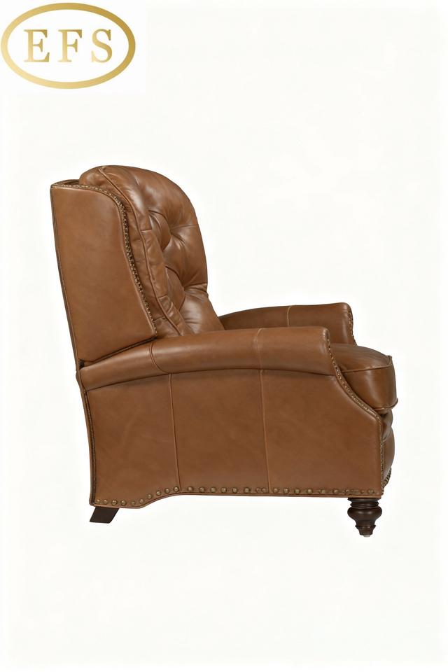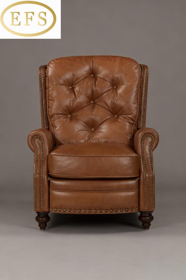 Classic / Vintage Chesterfield-style Accent Chair ONE SEATER Tufted Backrest Rolled Arms Nailhead Trim Full Genuine Reclining