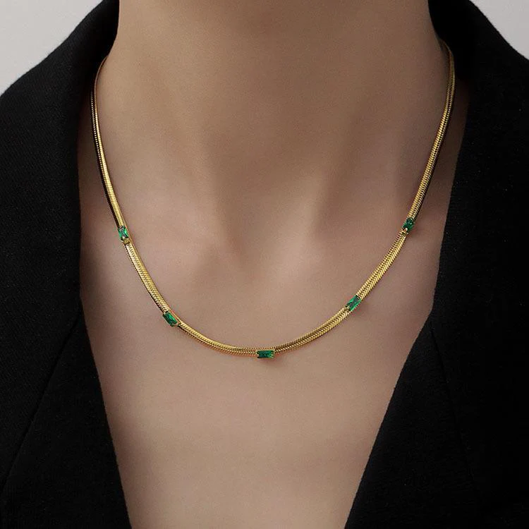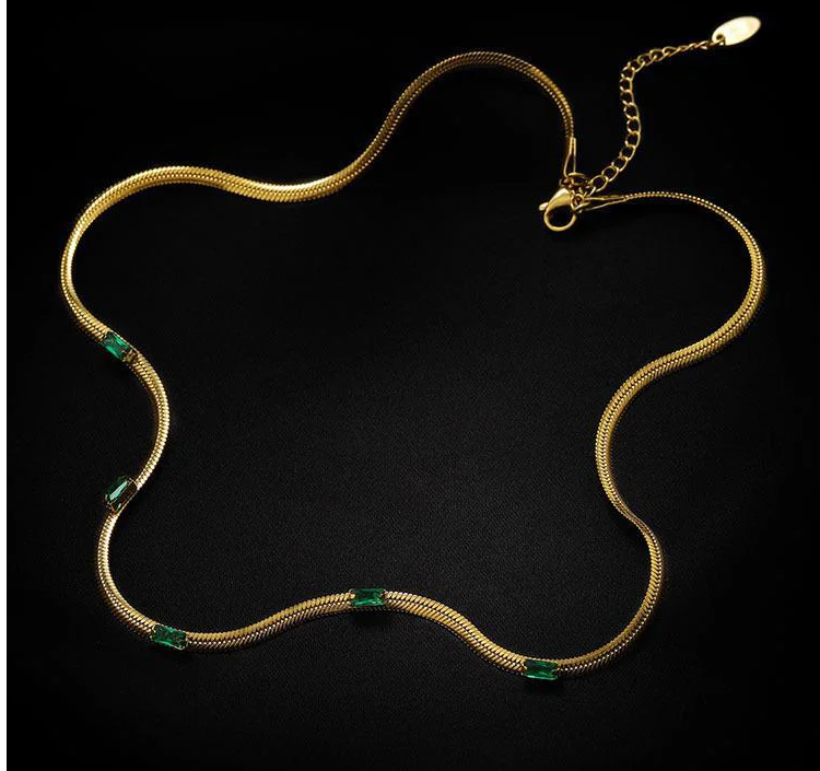 Classic Vintage Geometric Titanium Steel Inlay Zircon Necklace 1 Piece Fashionable Charm Chains