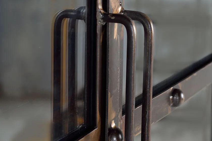 Classic Vintage Style Bedroom Wardrobe Cabinet Metal and Solid Wood Clothes Rack with Glass Doors Antique Style Armoire