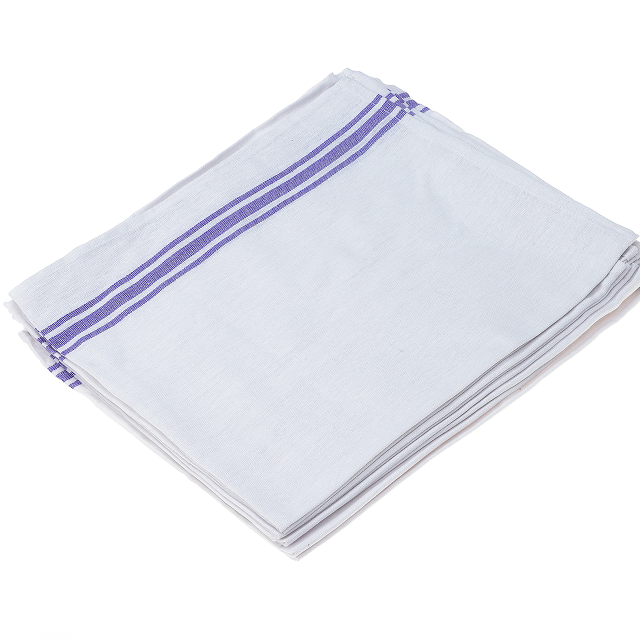 Classic White Cotton Tea Towels with Blue Border 50x70cm for Catering and Kitchen Cleaning