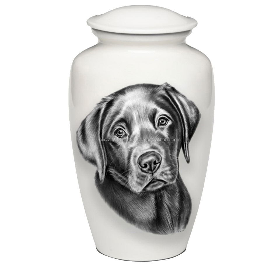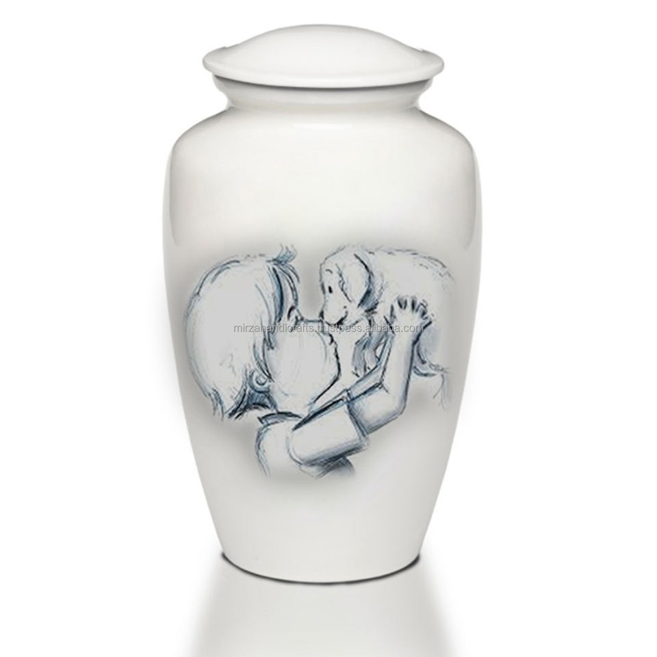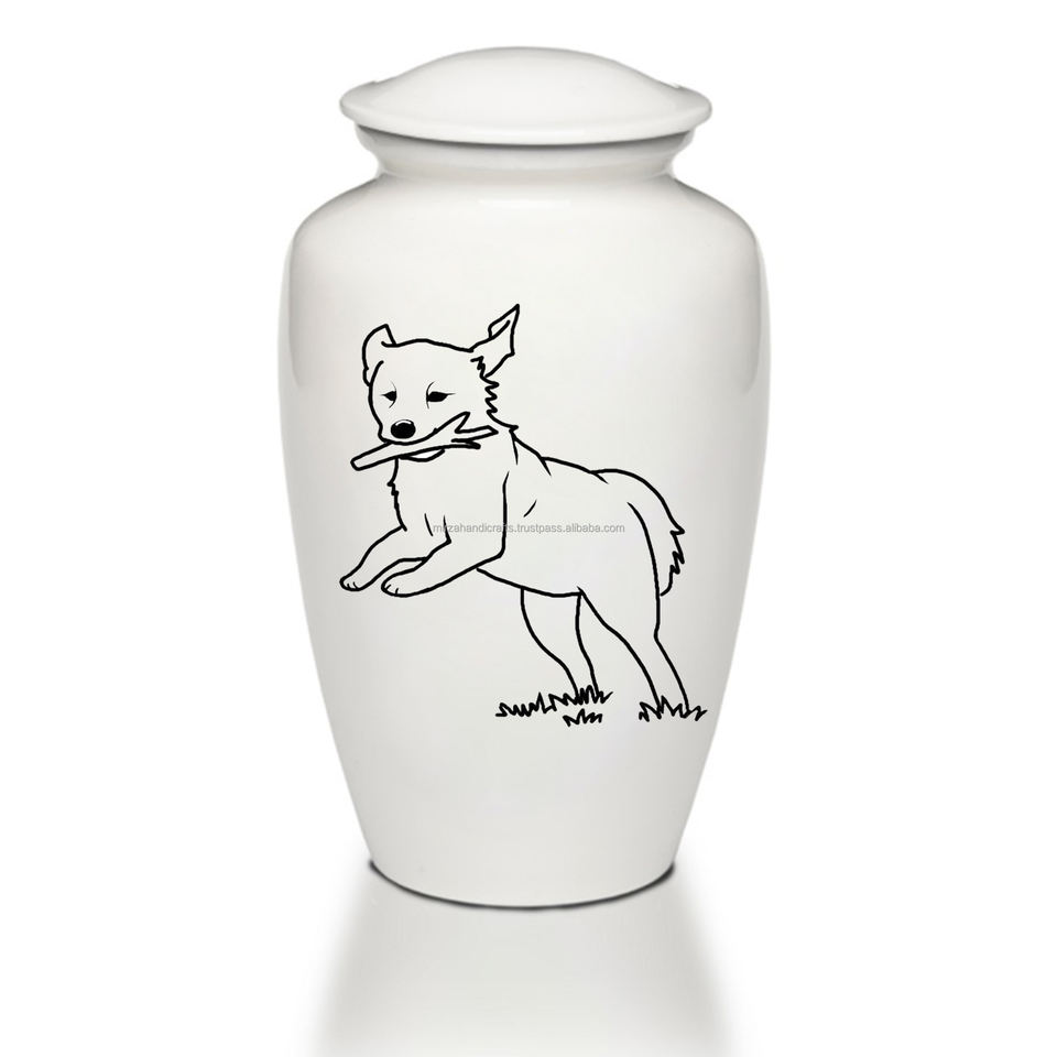 Classic White Glossy Metal Dog Pet Cremation Urn Handcrafted Memorial for Animal Ashes New Design Funeral Memorial