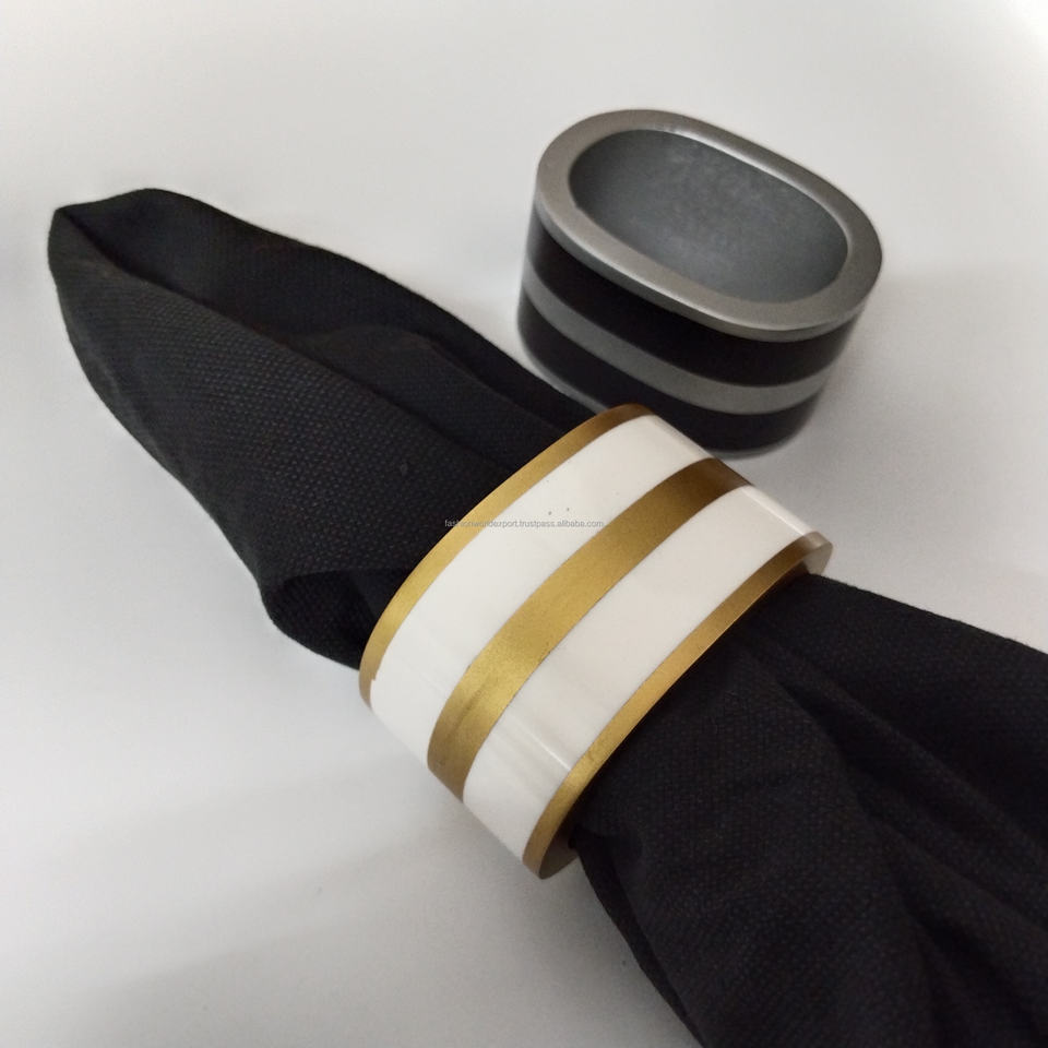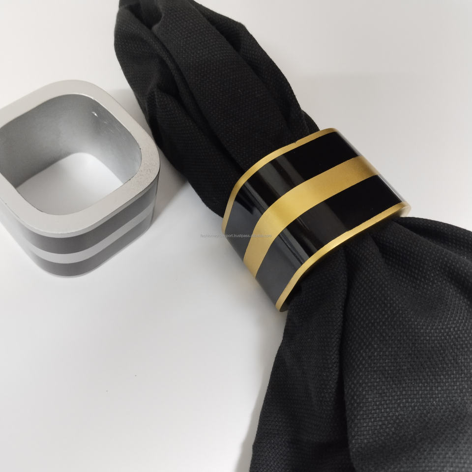 Classic White Golden Napkin Rings Square Round Corners Resin Napkin Holders for Party Wedding Table Linen & Decoration in India