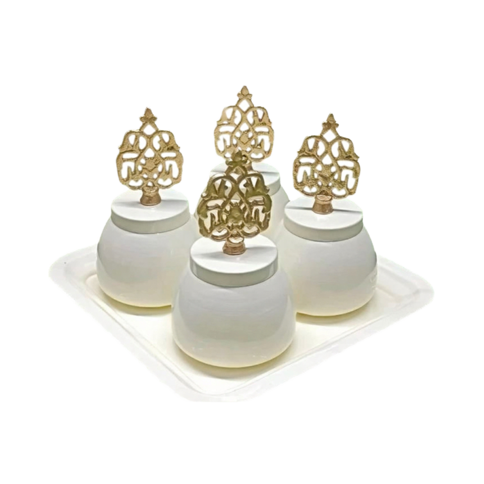 Classic White Metal Dry Fruit Jar with Knob Lid & Tray for Festival Diwali Dining Table Decor Nut Jars Storage & Display