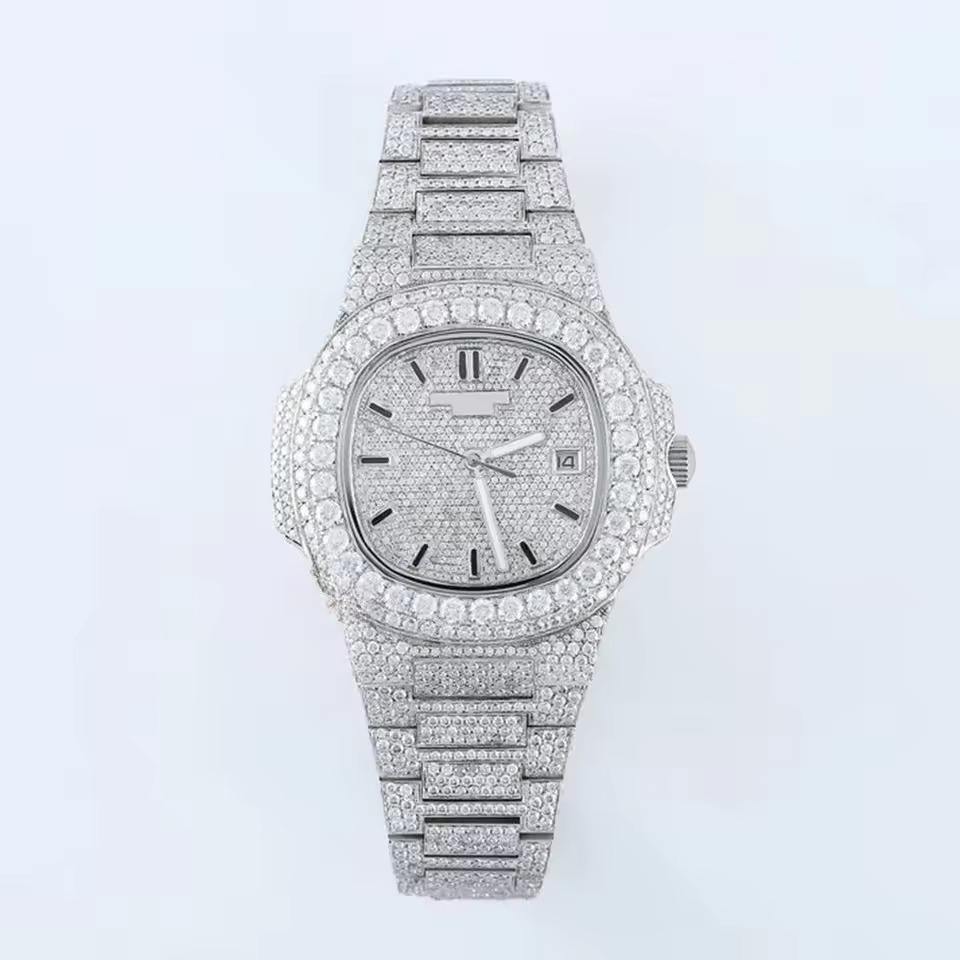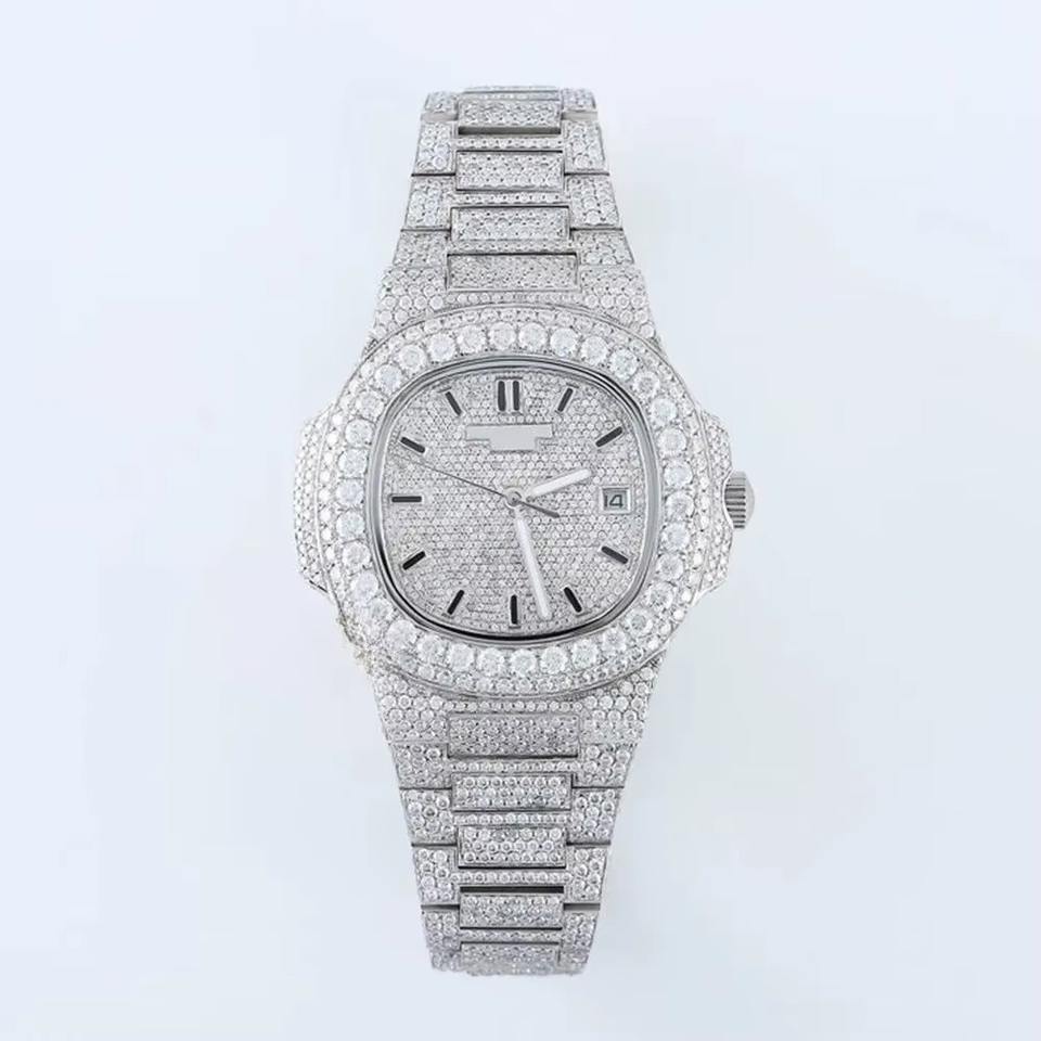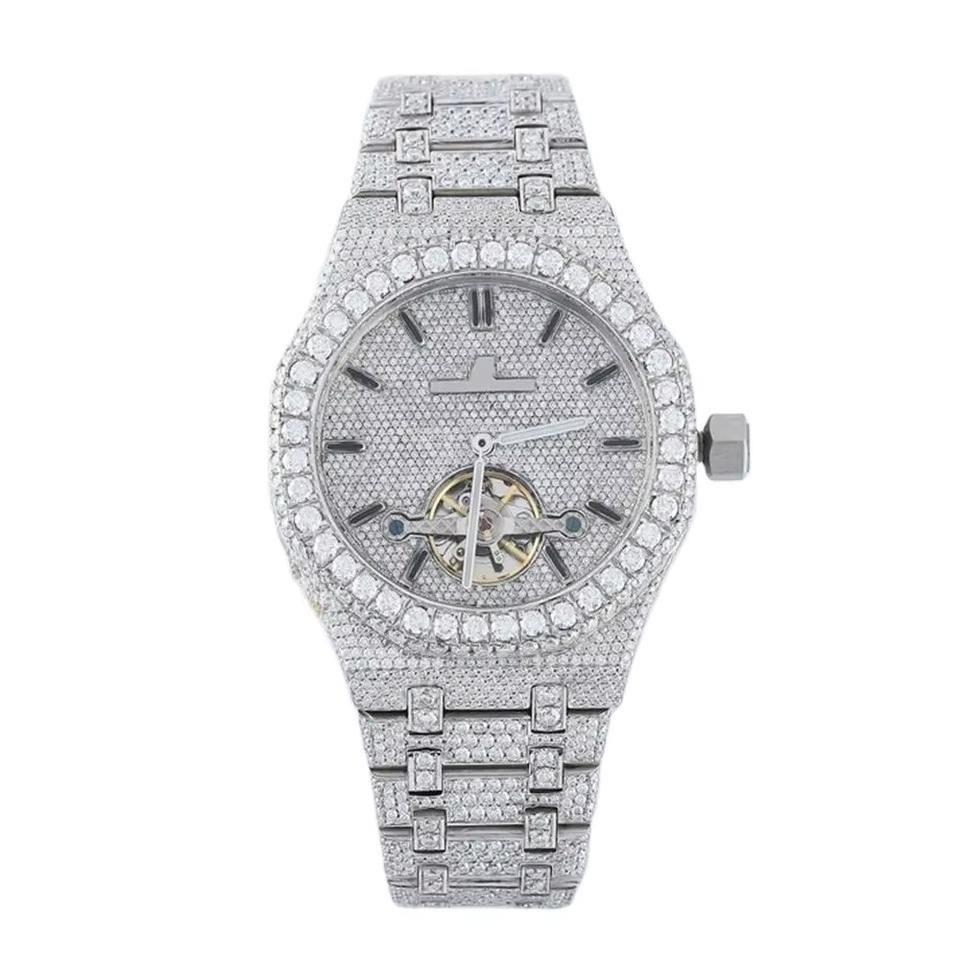 Classic White Tone Moissanite Diamond Watch Fully Iced Out Hip Hop Bling Timepiece VVS Automatic Movement Luxury Stainless Steel