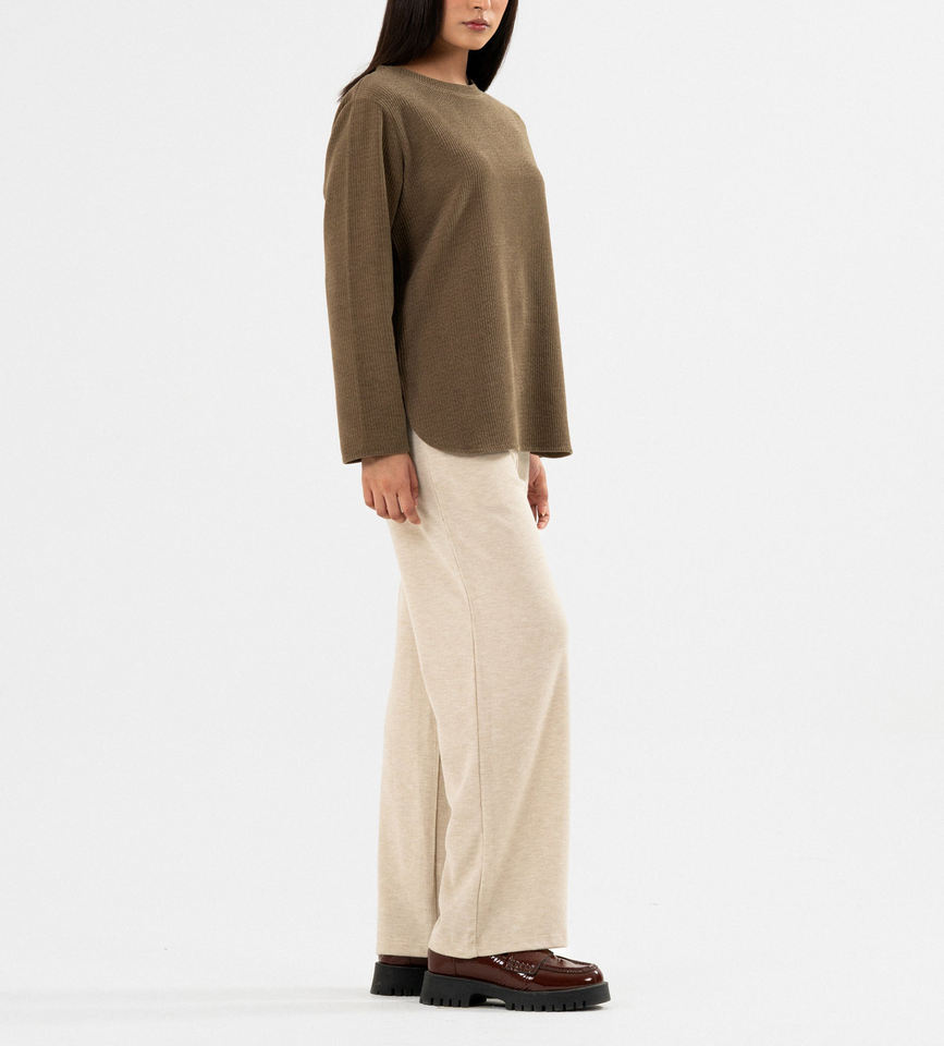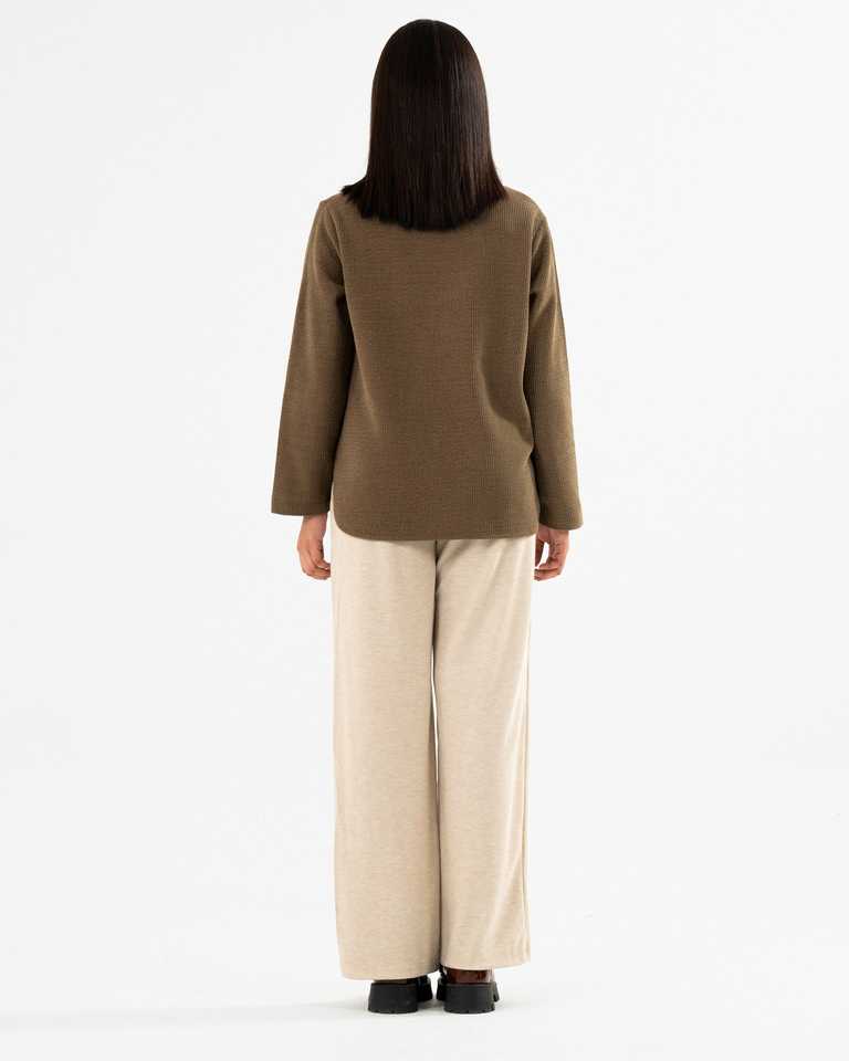 Classic Women Winter Full Sleeves Brown Ribbed Crewneck Sweatshirt Casual Wear Custom Made Cozy Winter Outfit