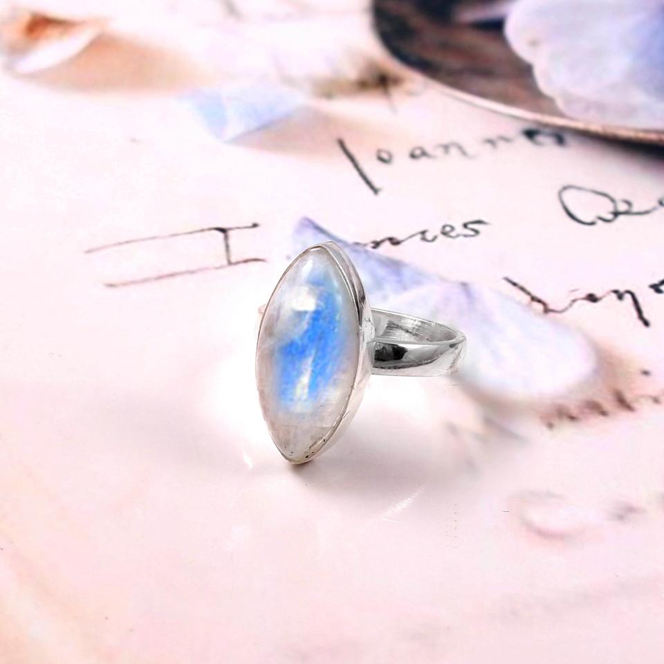 Classic Women's 925 Sterling Silver Rainbow Moonstone Engagement Ring with Bezel Setting for Anniversary Wedding & Parties