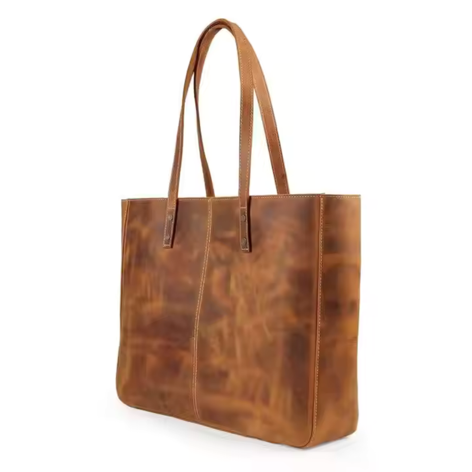 Classic Women's Durable Leather Carryall Bag with Shoulder Strap Handmade From Genuine Leather for Daily and Office Use