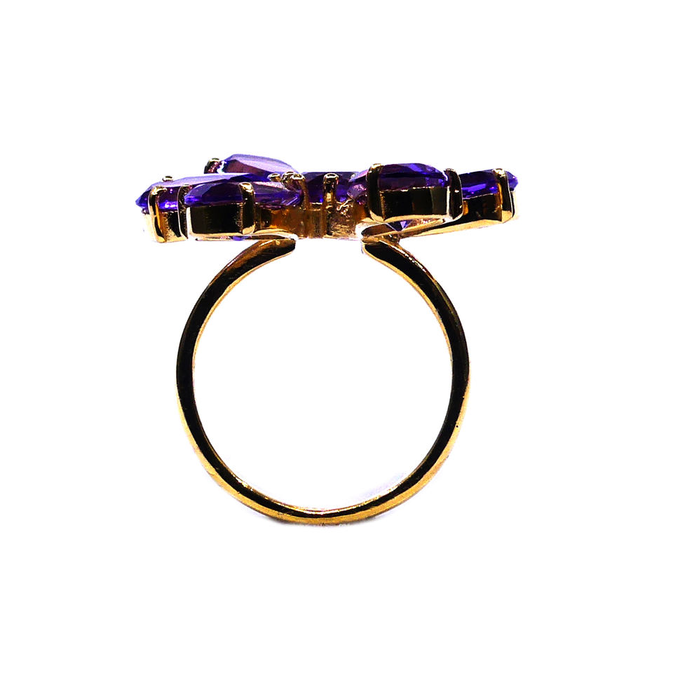 Classic Women's Wedding Ring 925 Sterling Silver with Gold Vermeil Amethyst Gemstone Stainless Steel Material for Anniversary