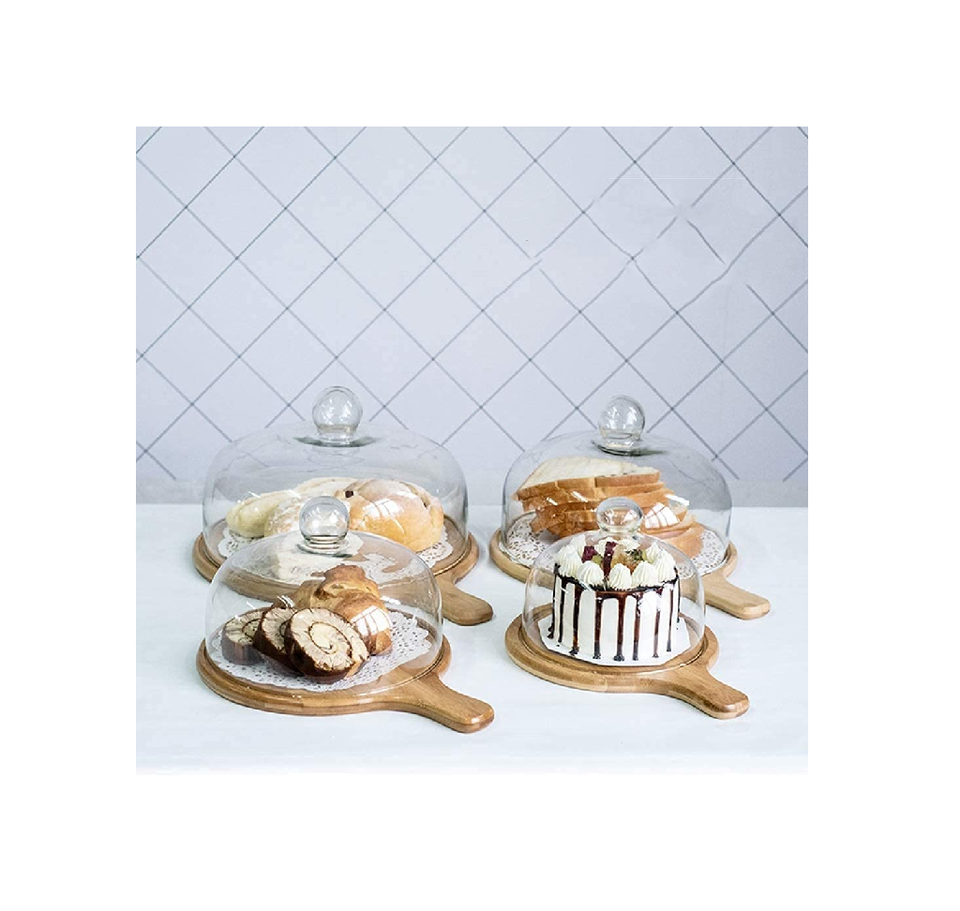 Classic Wood Cake Stand with Glass Dome Regular Round Customizable Wood Cake Stand Competitive Price