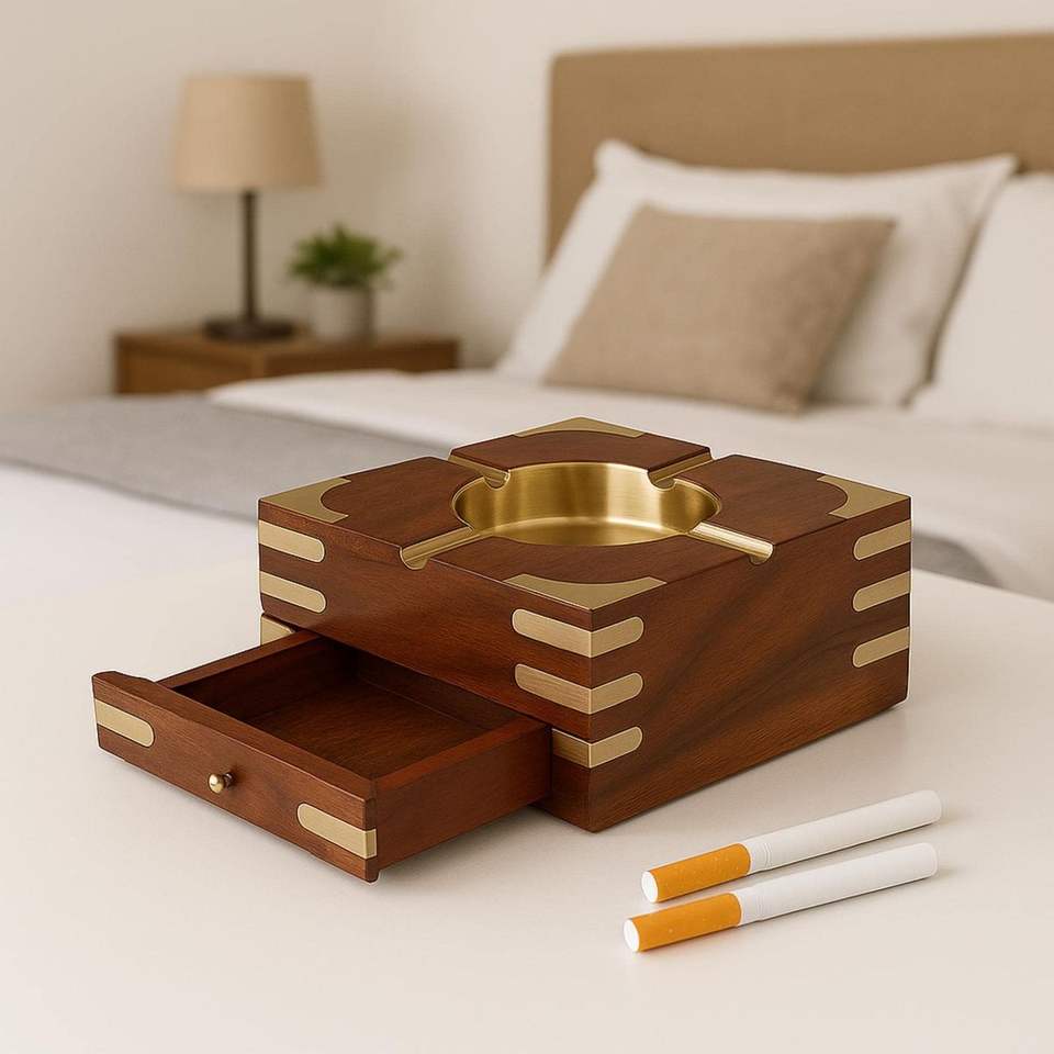 Classic Wooden Ashtray Perfect For Smokers Homes Offices Restaurants And Outdoor Lounges Offering Natural Look