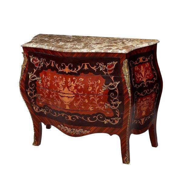 Classic Wooden Chest of Drawers with Marble Top Handcrafted Floral Inlay Gold Handles Luxury European Style Furniture