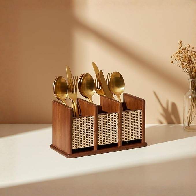 Vintage Classic Wooden Spoon Holder with Natural Grain Adjustable Lightweight Multifunction Kitchen Storage Rack